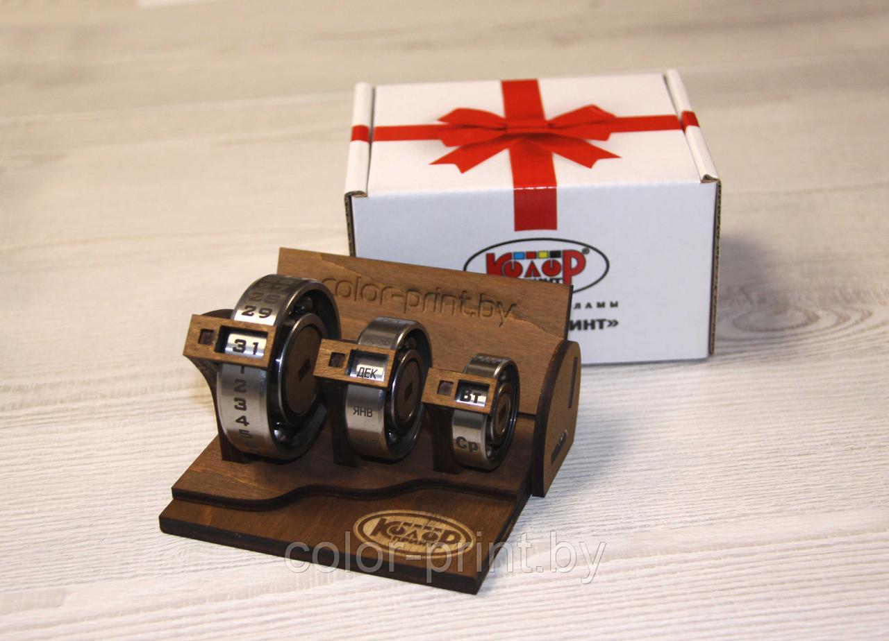 Вечный календарь на подшипниках с визитницей и вашим лого С тонировкой